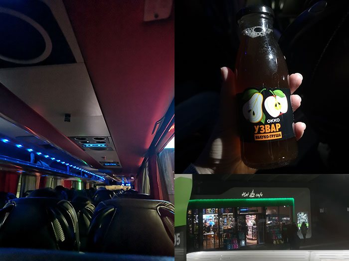 This time I tried something new, getting the overnight bus to Lviv from Krakow. It arrived earlier, but we didn’t book a hotel for that night for obvious reasons and almost everything was closed at 5.30 when we got to Lviv. We should have arrived at 6.45, but the trip took less. The bus ride was ok, with a couple of stops for comfort. At the very posh services on the Ukrainian motorway I bought a bottle of Uzvar. I’m loving this smoky drink.