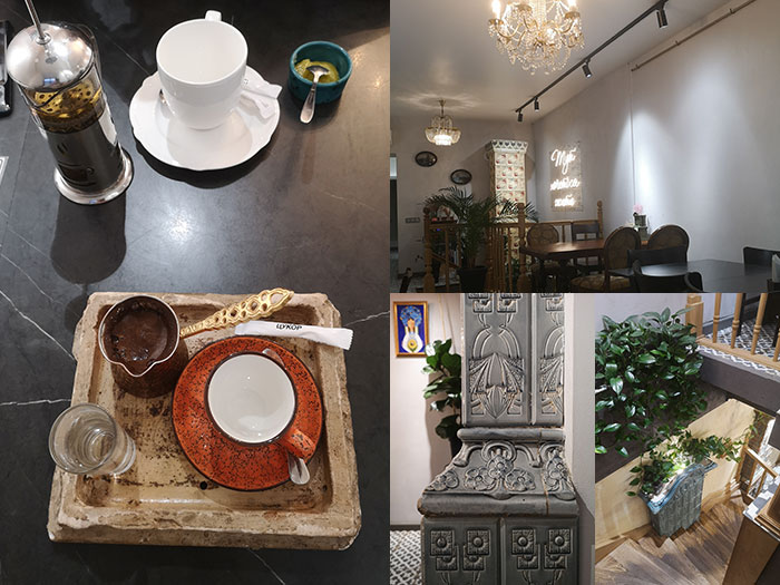 This restaurant has amazing coffee, the one which is made on sand. I’m loving the intense flavour it has, it feels rich. As I grew up in a coastal city with a big Turkish community, sand coffee reminds me of those days. This restaurant, Teplyi Pyets, is decorated with reclaimed Eastern European fireplaces/stoves. It looks gorgeous.