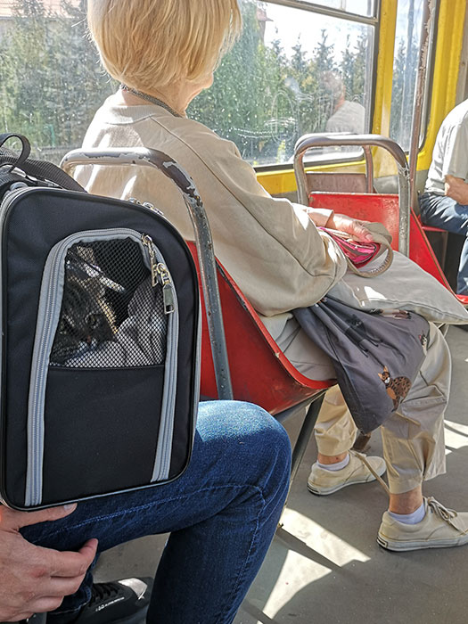 We went by car at the appointment we had for her last documents needed to be issued just before we left Ukraine. We had support from the animal shelter, Domivka, and everything went smoothly. On our way back we took the tram. She was perfectly fine with it and I thought she will be ok with travelling. For the most part she was indeed.