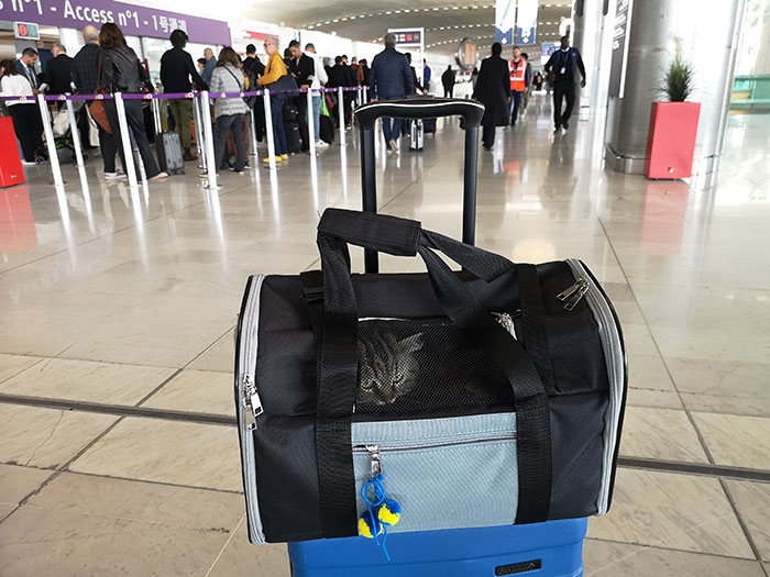 After two nights in the hotel, we left. My husband flew on the previous day, took the car and started driving towards France without going home. In the morning, I took a taxi to the airport with Volya. We needed a boarding pass, as they had to check the size of her carrier.