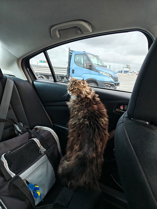 What a well behaved cat. My Kasia would not sit quietly for a minute even. Whole world would know about her torment 😉 I am very happy for 3 of you that you are at home now ❤️. Good luck! You could share more stories about Volya’s adventures in UK.
