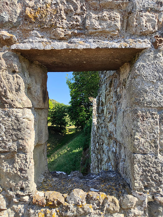 The earthworks and keep were built around 1100. The size of them is so impressive considering how few people there were and how little technology they had to do this. The views are beautiful and, of course, in the medieval time, this height of the earthworks and buildings made it easier to defend.