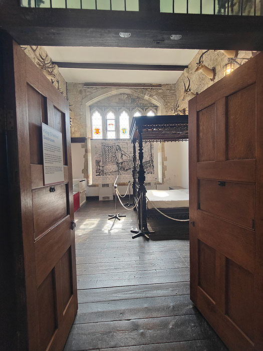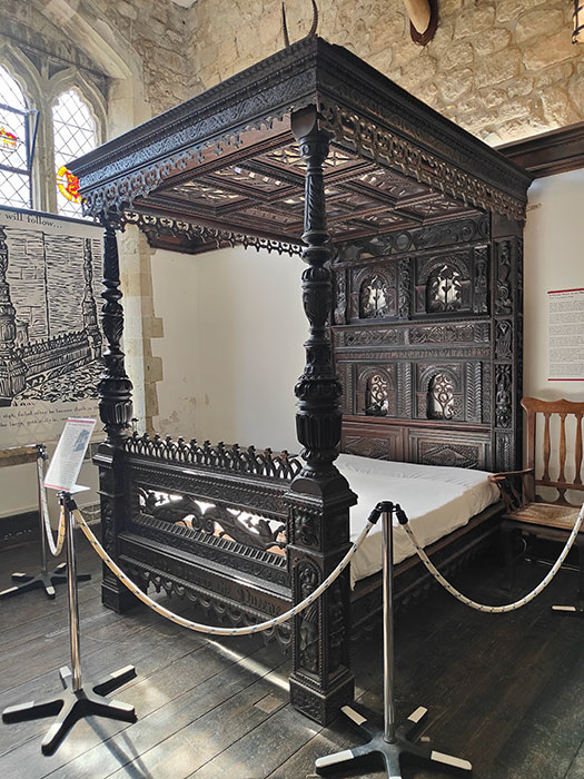 The bed is not from the 1600s, but it is a Victorian reproduction. Even so, it has some original Tudor carvings on it. It is also similar in style with the furniture that Charles I had used while living there.