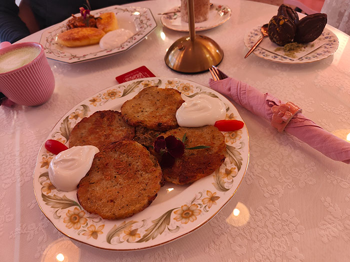 We stopped for breakfast and cakes because we didn’t have time to go there more than once and we really wanted to try the cakes. This is an Ukrainian restaurant, owned and staffed by refugees and their food is just superb. It is a fancy place with prices to match the quality.