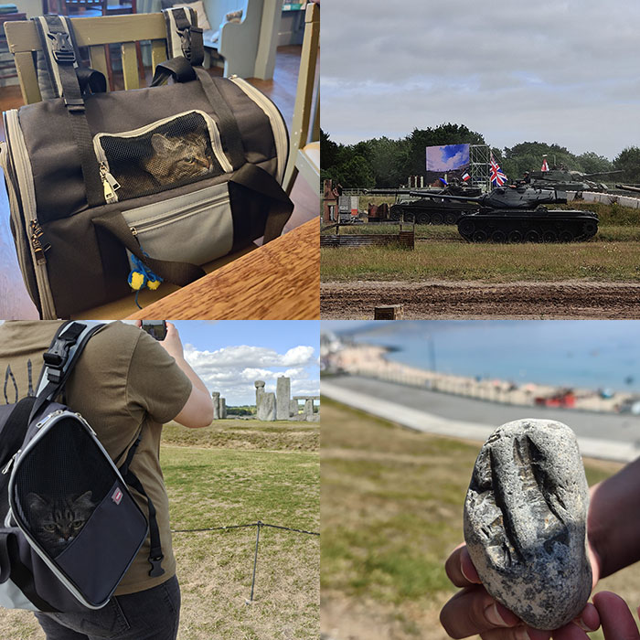 June: One of 2 trips to Oxford – Volya at the White House, Bladon, where Churchill had drinks in his youth – Tank Festival – With Volya at Stonehenge – The fossil I found on the beach in Lyme Regis, while we were walking there with Volya