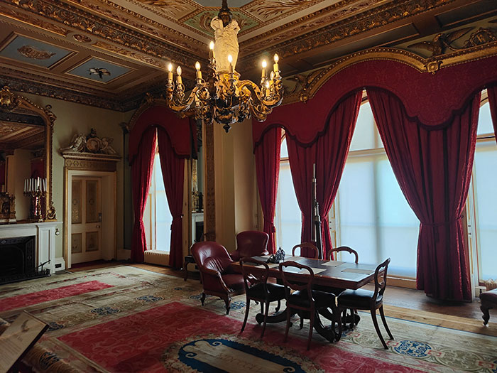 This is where Queen Victoria died. On the left is a painting of Prince Albert.