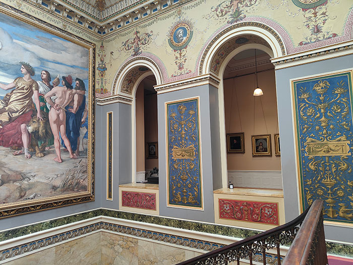 This is one of the alcove seats installed on the grounds. It has Minton tiles on the ceiling. These were high-end tiles, used in places such as St. George’s Hall in Liverpool.