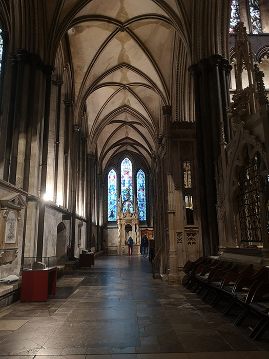 Salisbury Cathedral is worth visiting for two reasons. Firstly, it has a fascinating history. Secondly, it houses a copy of Magna Carta, which can be seen. I didn’t take pictures from outside because it was raining and there was a funeral. I share a lot of pictures from the church, including one with an elderly 19-years old doggy. Enjoy!