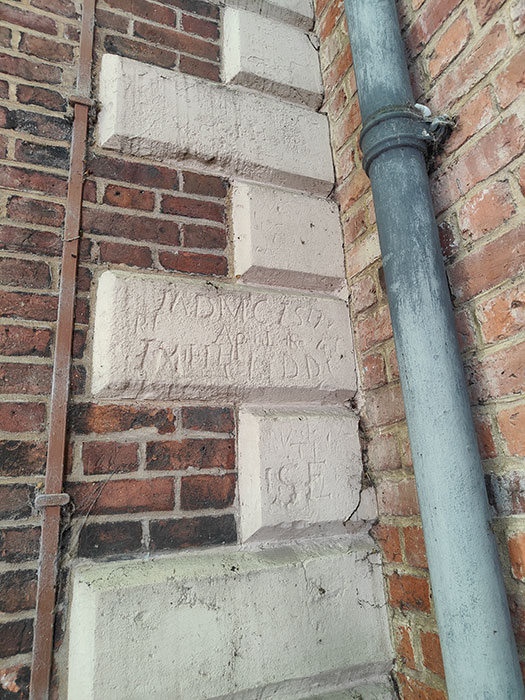 The bricks above the door are slightly lighter in colour. That is because these had to be repaired after the building was hit during Nazi bombing of Liverpool.