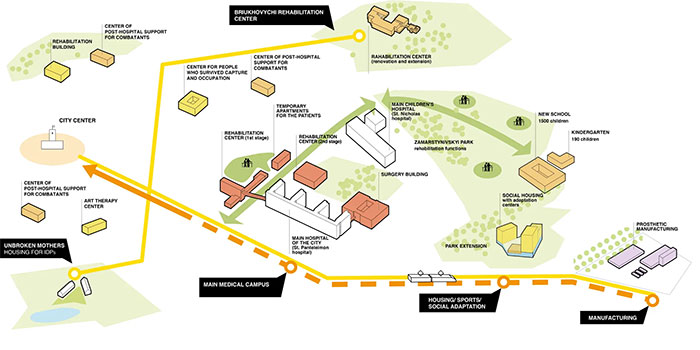 The physical treatment includes surgery (for example reconstructive surgery), orthopedics, and robotic prosthetics. Unbroken both installs and manufactures prosthetics. Rehabilitation services are available to patients who need rehabilitation due to other injuries and illnesses. It includes an array of options, such as yoga classes and arts (painting).