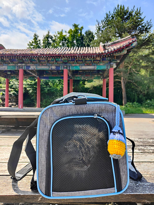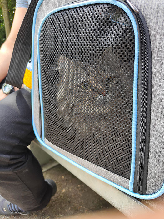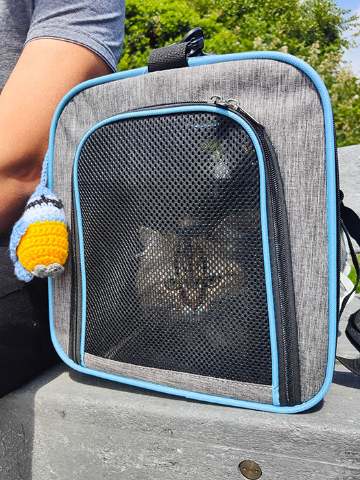 What fun for Volya to go out on adventures with you. The cat carrier is fantastic especially as you can carry is just like a bag.